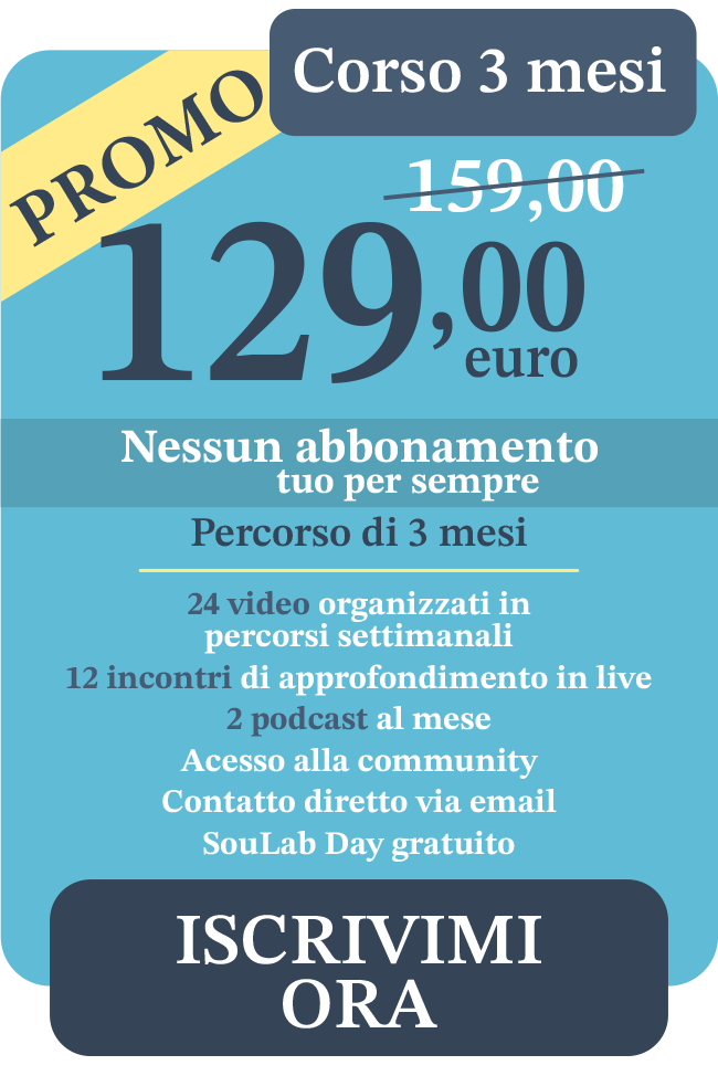E non sarai mai lasciato solo/a: ci sono io e c’è la community di Soulab che ti ascolta e ti sostiene.