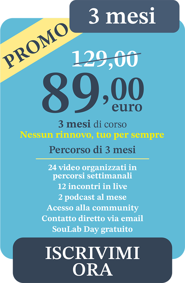 E non sarai mai lasciato solo/a: ci sono io e c’è la community di Soulab che ti ascolta e ti sostiene.